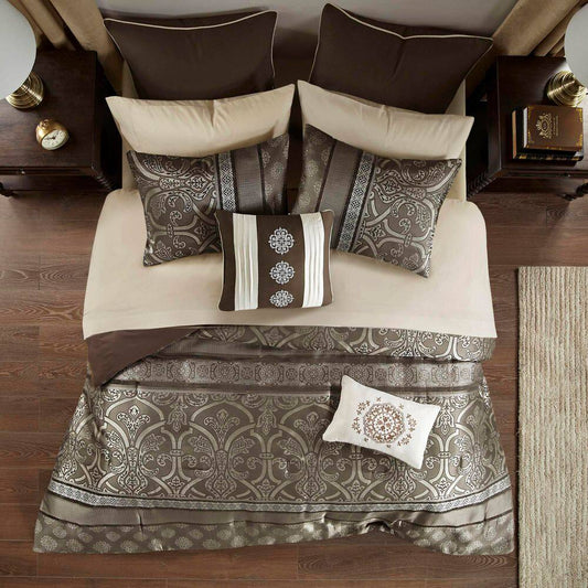 Alexine 16-Piece Brown Polyester Queen Comforter Set