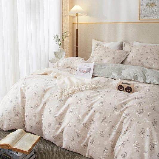 Boho Floral Duvet Cover King Bedding Vintage Cotton Aesthetic Bedding Set King Size Comforter Cover Set Garden Lightweight Soft Duvet Cover Set Zipper Closure Breathable