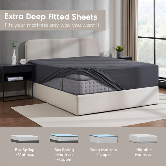 Extra Deep Pocket Queen Fitted Sheet Only, Fits 18" to 24" Mattress, Soft Microfiber Fitted Bed Sheet, Charcoal Gray